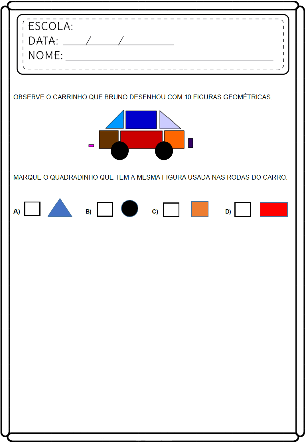 Observe o carrinho que bruno desenhou com 10 figuras geométricas.